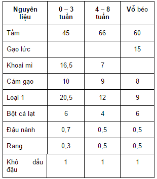 Lượng thức ăn tự nhiên cho vịt ăn, ta có thể trộn theo công thức sau: